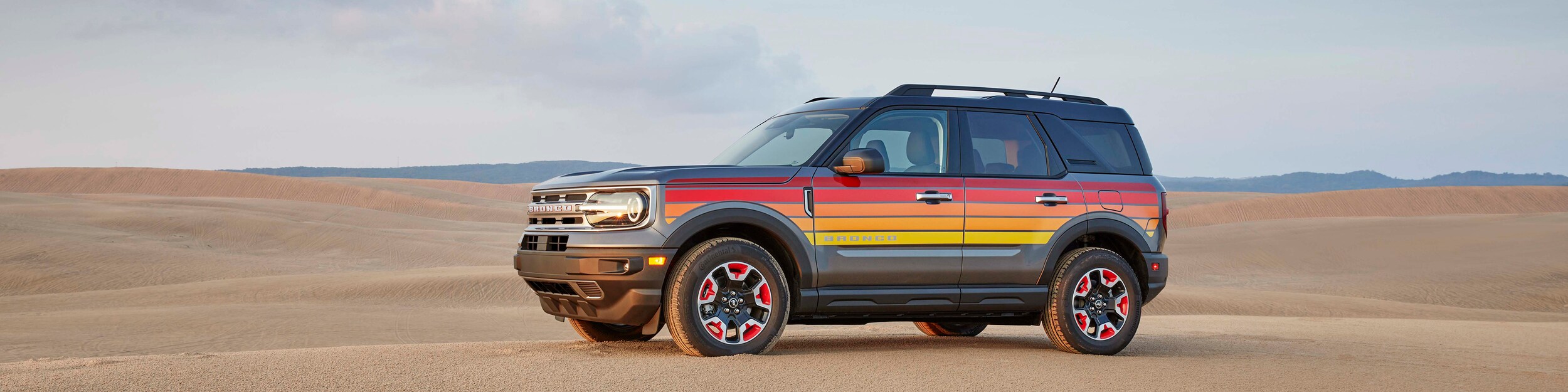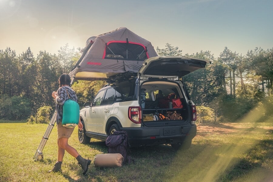 Bronco® Sport Outer Banks® with optional equipment and available Ford Accessories shown. Always consult the Owner's Manual before off-road driving, know your terrain and trail difficulty, and use appropriate safety gear.