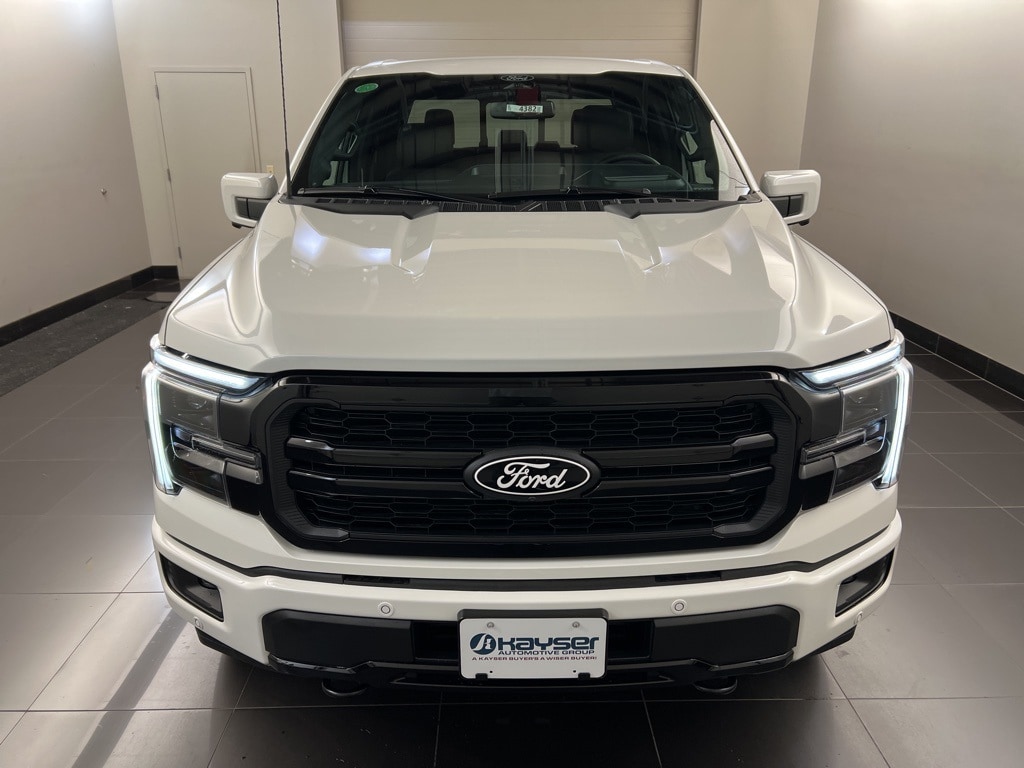 2025 Ford F-150 Lariat 2nd Row Heated Seats, 4 Pickup Box Tie-Down Plates, ActiveX Trimmed Bucket Seats (B), Ambient Lighting - Ice Blue Color Only, Auto High-beam Headlights, Bed Utility Package, Black Exterior Badging, Black Grille, Black Taillamp Bezels, Body-Color Front & Rear Bumpers, Body-Color Skull Caps & Door Handles, Brake assist, Console Worksurface, Dark Interior Appliques, Equipment Group 502A High, Garage door transmitter, Gray Box Side Decal, GVWR: 7,100 lbs Payload Package, Heads-Up Display, Heated Front Seats, Heated steering wheel, Illuminated Driver & Passenger Visors, Integrated Trailer Brake Controller, Lariat Black Appearance Package, LED Box Lighting, Matte Black Tailgate F-150 Decal, Memory seat, Mobile Office Package, Navigation system: Connected Navigation, Partitioned Lockable Rear Storage, Power Tailgate, Power-Sliding Rear Window, Pro Access Tailgate, Radio: B&O Unleashed Sound System by Bang & Olufsen, Rain sensing wipers, Tow/Haul Package, Twin Panel Moonroof, Ventilated front seats, Wheels: 20" Gloss Black Painted Aluminum, Wireless Charging.