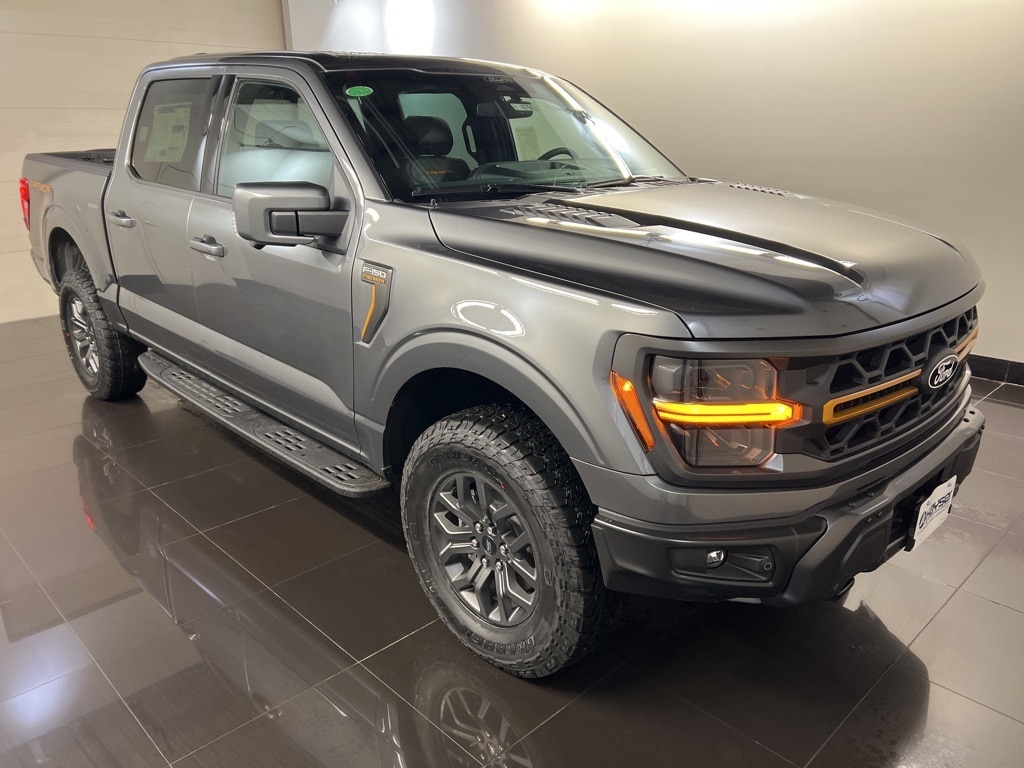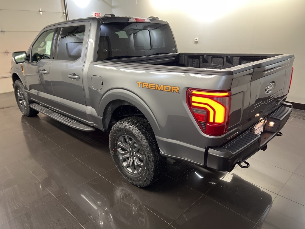 2025 Ford F-150 Tremor 2nd Row Heated Seats, 4 Pickup Box Tie-Down Plates, Ambient Lighting, Auto High-beam Headlights, Auto-Dimming Rear-View Mirror, Bed Utility Package, Brake assist, Console Worksurface, Electronic Locking w/3.73 Axle Ratio, Equipment Group 402A High, Front Axle w/Torsen Differential, GVWR: 7,100 lbs Payload Package, Heads-Up Display, Heated Front Seats, Heated Steering Wheel, Illuminated entry, Integrated Trailer Brake Controller, Internet access capable: FordPass Connect 5G, LED Box Lighting, LED Taillamps, Media Bin Door, Mobile Office Package, Modular Front Bumper & Carbon Black Rear Bumper, Navigation system: Connected Navigation, Partitioned Lockable Rear Storage, Power driver seat, Power Glass Heated Sideview Mirrors, Power Tailgate, Power-Adjustable Pedals w/Memory, Premium Wrapped Steering Wheel, Radio: B&O Unleashed Sound System by Bang & Olufsen, Rain-Sensing Wipers, Remote keyless entry, Tough Bed Spray-In Bedliner, Tow/Haul Package, Two-Speed Automatic AWD w/Mechanical Locking 4WD, Unique Tremor Leather-Trimmed Bucket Seats, Universal Garage Door Opener, Wheels: 18" Alloy w/Dark Matte Finish, Wireless Charging.