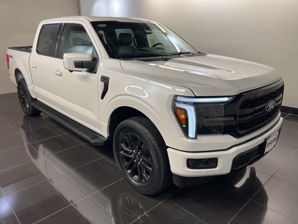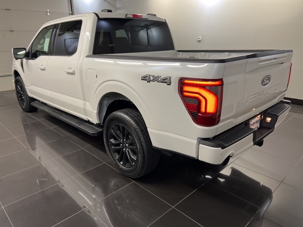 2025 Ford F-150 Lariat 2nd Row Heated Seats, 4 Pickup Box Tie-Down Plates, ActiveX Trimmed Bucket Seats (B), Ambient Lighting - Ice Blue Color Only, Bed Utility Package, Black Exterior Badging, Black Grille, Black Taillamp Bezels, Body-Color Front & Rear Bumpers, Body-Color Skull Caps & Door Handles, Brake assist, Console Worksurface, Dark Interior Appliques, Equipment Group 502A High, Gray Box Side Decal, Heads-Up Display, Heated Front Seats, Heated steering wheel, Illuminated Driver & Passenger Visors, Illuminated entry, Integrated Trailer Brake Controller, Internet access capable: FordPass Connect 5G, Lariat Black Appearance Package, LED Box Lighting, Matte Black Tailgate F-150 Decal, Memory seat, Mobile Office Package, Navigation system: Connected Navigation, Partitioned Lockable Rear Storage, Pedal memory, Power Tailgate, Power-Sliding Rear Window, Pro Access Tailgate, Radio: B&O Unleashed Sound System by Bang & Olufsen, Rain sensing wipers, Tow/Haul Package, Twin Panel Moonroof, Ventilated front seats, Wheels: 20" Gloss Black Painted Aluminum, Wireless Charging.