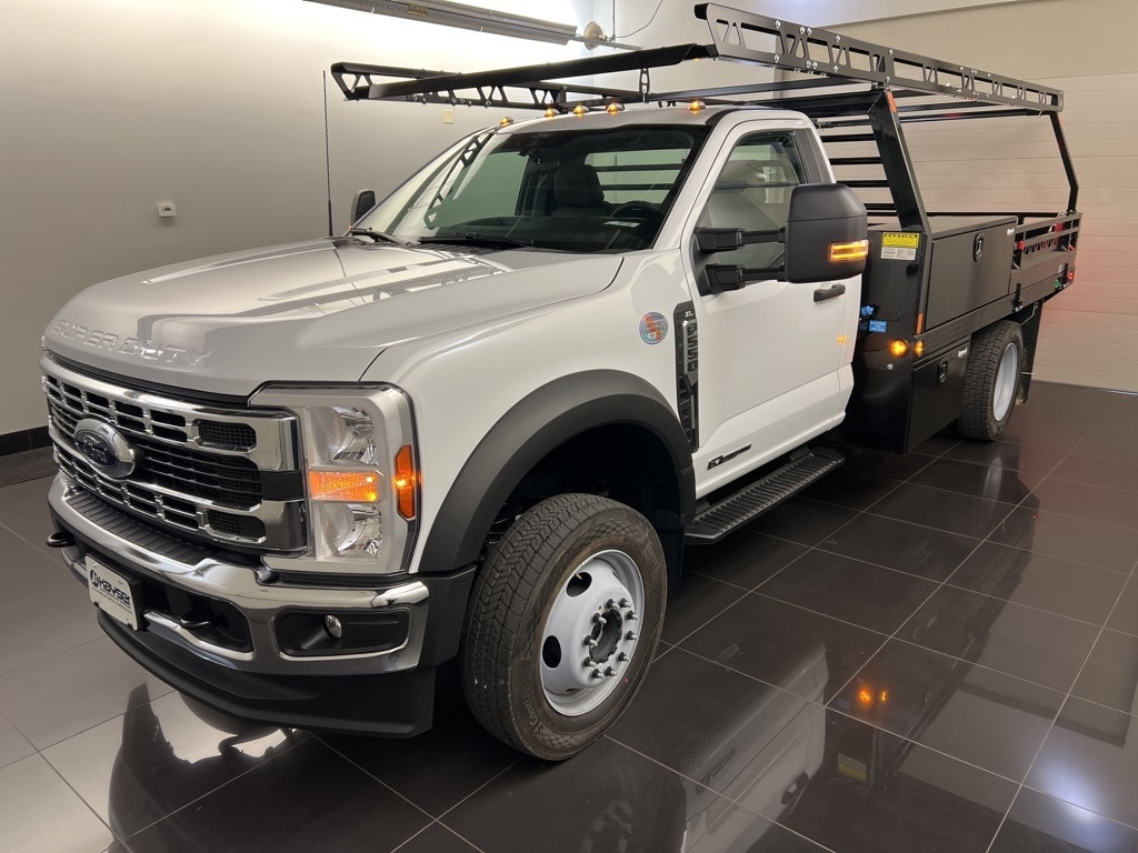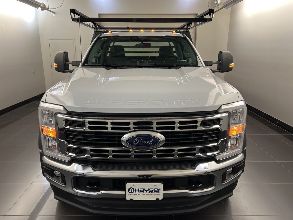 2025 Ford F-550SD XL 120V/400W Outlet, 4-Wheel Disc Brakes, 410 Amp Dual Alternators, ABS brakes, Air Conditioning, AM/FM Stereo w/MP3 Player, Bright Grille, Chrome Front Bumper, Cloth 40/20/40 Split Bench Seat, Compass, Delay-off headlights, Dual 68 AH/65 AGM Battery, Dual rear wheels, Emergency communication system: SYNC 4 911 Assist, Engine Block Heater, Front anti-roll bar, Front Center Armrest w/Storage, Front License Plate Bracket, Front reading lights, GVWR: 19,500 lb Payload Plus Upgrade Package 1, Halogen Fog Lamps, Illuminated entry, Limited Slip w/4.30 Axle Ratio, Order Code 660A, Outside temperature display, Overhead console, Panic alarm, Passenger cancellable airbag, Platform Running Boards, Power steering, Power windows, Rear View Camera & Prep Kit, Remote keyless entry, Remote Start, Security system, Snow Plow Prep Package, Speed control, Steering wheel mounted audio controls, SYNC 4 Communication & Entertainment System, Tilt steering wheel, Traction control, Trip computer, Turn signal indicator mirrors, Wheels: 19.5" x 6" Argent Painted Steel, XL Chrome Package.
