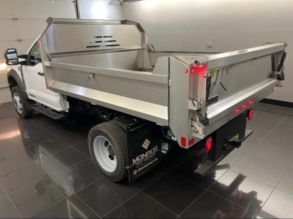2025 Ford F-550SD XL 9 ', MTE SERIES STAINLESS STEEL 3-4 YD CAPACITY, FOLDING SIDE DUMP BODY, 7 GA. FLOOR, 12 GA. SIDES AND 10 GA. ENDS 16'' HIGH SIDES 22'' HIGH TAILGATE, HEAVY DUTY FRONT BULKHEAD WITH TAPERED LASER CUT WINDOW AND INTEGRAL 12'' TAPERED CAB SHEILD, INTERNAL DIRT SHEDDING TOP RAILS AND TAILGATE, WESTERN STYLE UNDERSTRUCTURE WITH 10 GA. LONG MEMBERS, SINGLE LEVER RELEASE QUICK DROP TAILGATE, DOUBLE ACTING ELECTRIC SUBFRAME HOIST (CHAMPION) 120V/400W Outlet, 350 Amp Dual Alternators, ABS brakes, Air Conditioning, AM/FM Stereo w/MP3 Player, Bright Grille, Chrome Front Bumper, Delay-off headlights, Dual 68 AH/65 AGM Battery, Dual front impact airbags, Dual rear wheels, Engine Block Heater, Front License Plate Bracket, Front reading lights, GVWR: 19,500 lb Payload Plus Upgrade Package 1, Halogen Fog Lamps, Illuminated entry, Order Code 660A, Outside temperature display, Overhead airbag, Overhead console, Panic alarm, Passenger cancellable airbag, Platform Running Boards, Power door mirrors, Power steering, Power windows, Rear View Camera & Prep Kit, Remote keyless entry, Remote Start, Security system, Snow Plow Prep Package, Speed control, Steering wheel mounted audio controls, SYNC 4 Communication & Entertainment System, Tilt steering wheel, Trip computer, Turn signal indicator mirrors, XL Chrome Package.